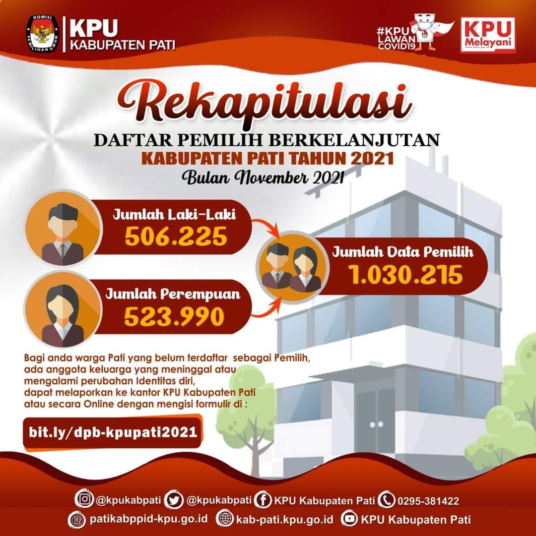 #TemanPemilih, Berikut Rekapitulasi Daftar Pemilih Berkelanjutan Kabupaten Pati Tahun 2021 Bulan November 2021.
