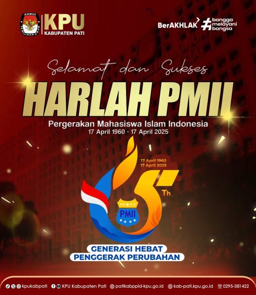 KPU Kabupaten Pati mengucapkan Selamat dan Sukses Harlah PMII (Pergerakan Mahasiswa Islam Indonesia) yang ke 65.