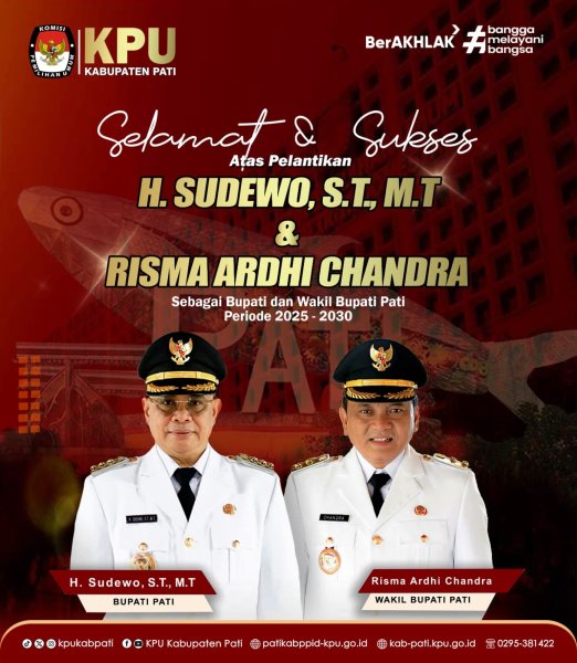 Selamat dan Sukses pelantikan Bupati dan Wakil Bupati Pati Periode 2025 - 2030