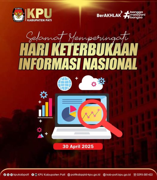 Komisi Pemilihan Umum (KPU) Kabupaten Pati mengucapkan Selamat Hari Keterbukaan Informasi Nasional 30 April 2025.