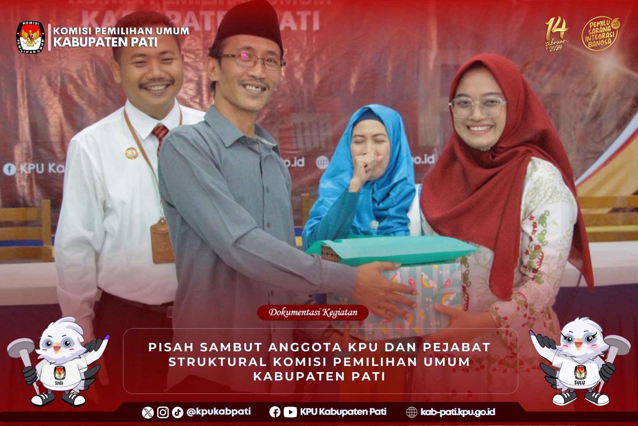 KPU Kabupaten pati melakukan serah terima jabatan Pejabat Struktural, Sub Bagian Hukum dan SDM Joko Purwanto, S.E, Sub Bagian Program Data dan Informasi Qurniawan Adi Utomo, S.H. dan Anggota KPU Kabupate Pati Supriyanto, S.H., S.Sos. kepada Teguh Wijaya, S.E sebagai Kasubag Program Data dan Informasi dan Ita Asma Dahlia, Amd. Kasubag Hukum dan SDM, Jumat, (8/9/2023)