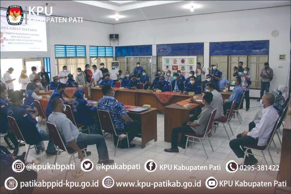KOMISI PEMILIHAN UMUM KABUPATEN PATI PADA HARI SENIN 15 MARET 2021 BERTEMPAT DI AULA KPU KABUPATEN PATI MENERIMA SILATURAHMI DAN AUDIENSI PARTAI DEMOKRAT YANG DIPIMPIN LANGSUNG KETUA DPC PARTAI DEMOKRAT KABUPATEN PATI H. JONI KURNIANTO ST, MMT.