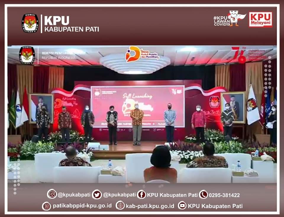 Jum'at (20/8), KPU Kabupaten Pati mengikuti zoom meeting Soft Launching dan Seminar Program Desa Peduli Pemilu dan Pemilihan Tahun 2021 "Dari Desa Untuk Indonesia" yang diadakan oleh KPU RI. Program yang diresmikan oleh Ketua KPU RI Ilham Saputra bersama Sekretaris Jenderal KPU RI Bernad Dermawan Sutrisno ini juga disiarkan secara live streaming melalui akun youtube resmi KPU RI, serta facebook KPU Pati pada pukul 13:30 WIB.
