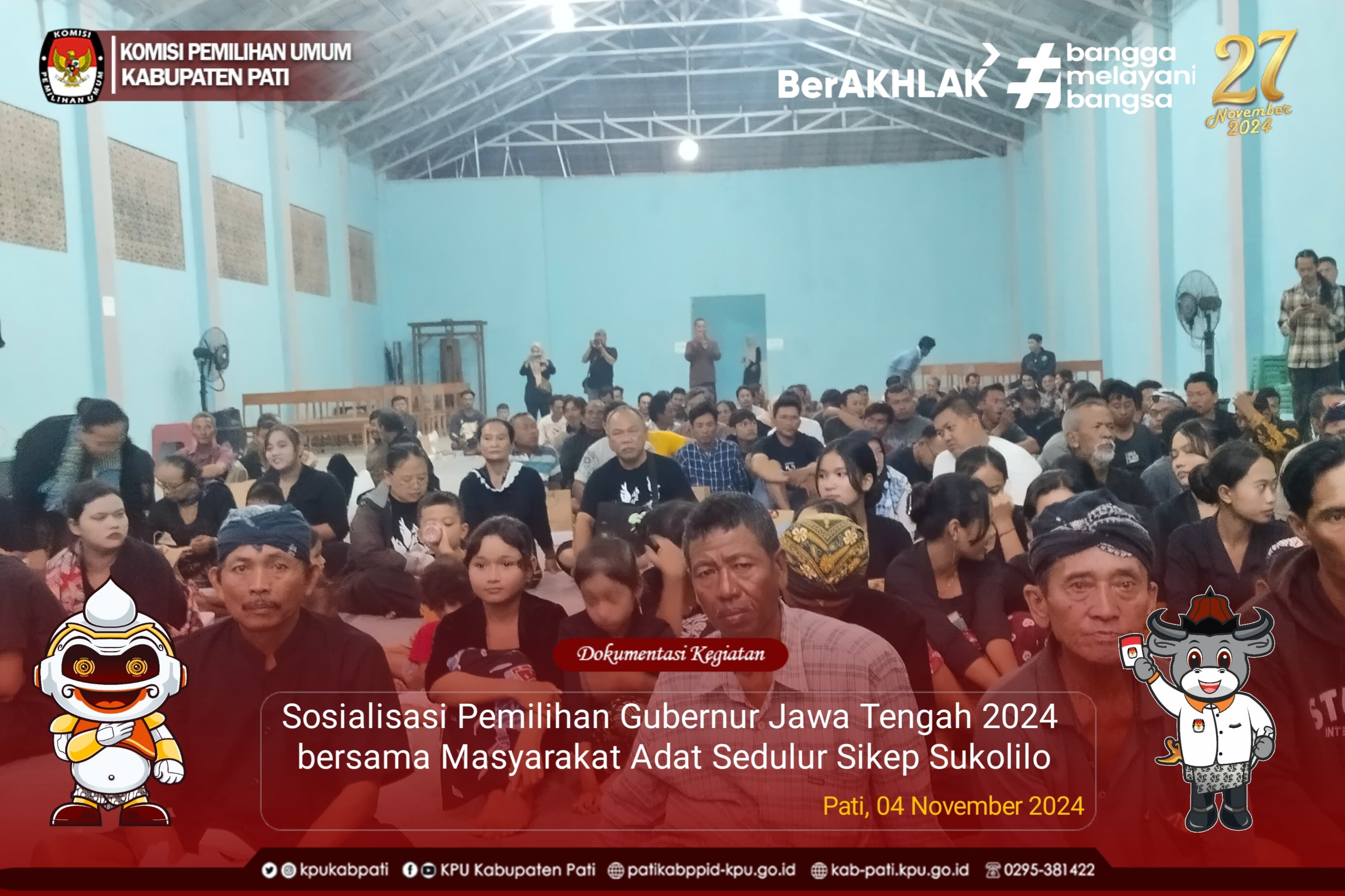 KPU Provinsi Jawa Tengah beserta KPU Kabupaten Pati melakukan Sosialisasi Pemilihan Gubernur Jawa Tengah 2024 bersama Masyarakat Adat Sedulur Sikep Sukolilo.