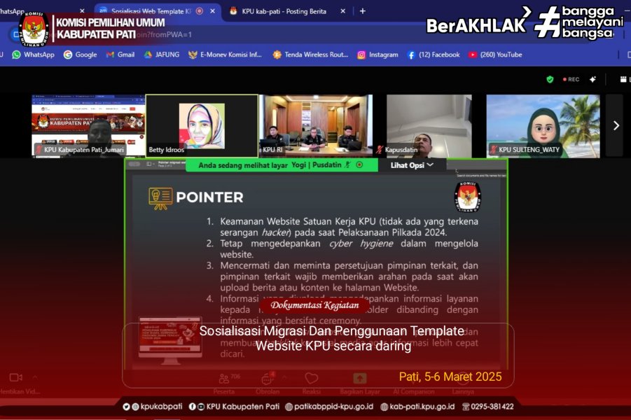 Acara yang dilakukan secara daring lewat zoom meeting tersebut dihadiri oleh admin website KPU seluruh Indonesia, acara sendiri dibuka oleh Anggota Komisi Pemilihan Umum Republik Indonesia Ibu Betty Epsilon Idroos. Acara senduiri diselenggrakan pada hari rabu - kamis tanggal 5 - 6 maret 2025.