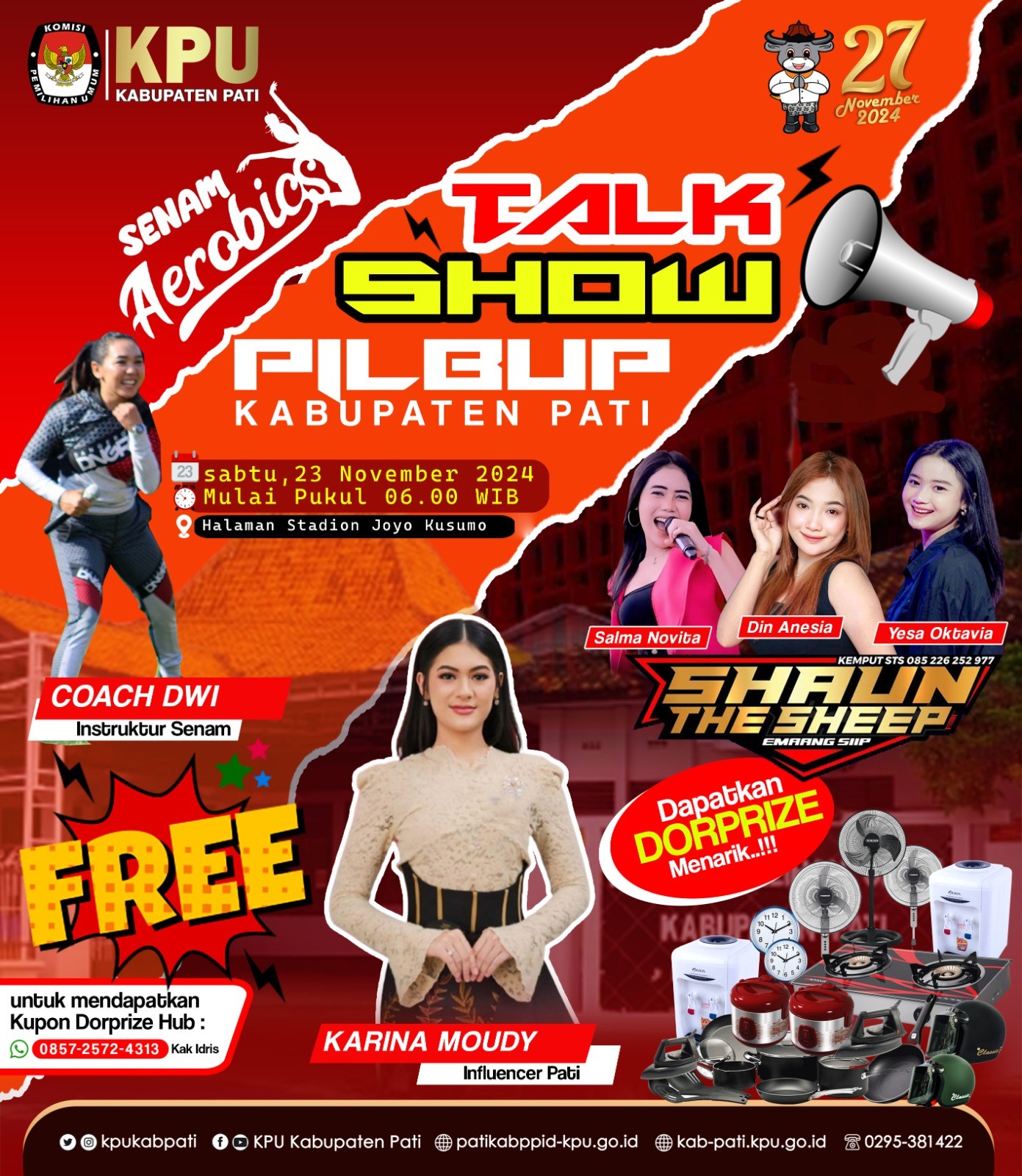 Dalam Rangka Sosialisasi Pemilihan Bupati dan Wakil Bupati tahun 2024, KPU Kabupaten Pati mengadakan Talk Show Pilbup kabupaten Pati.