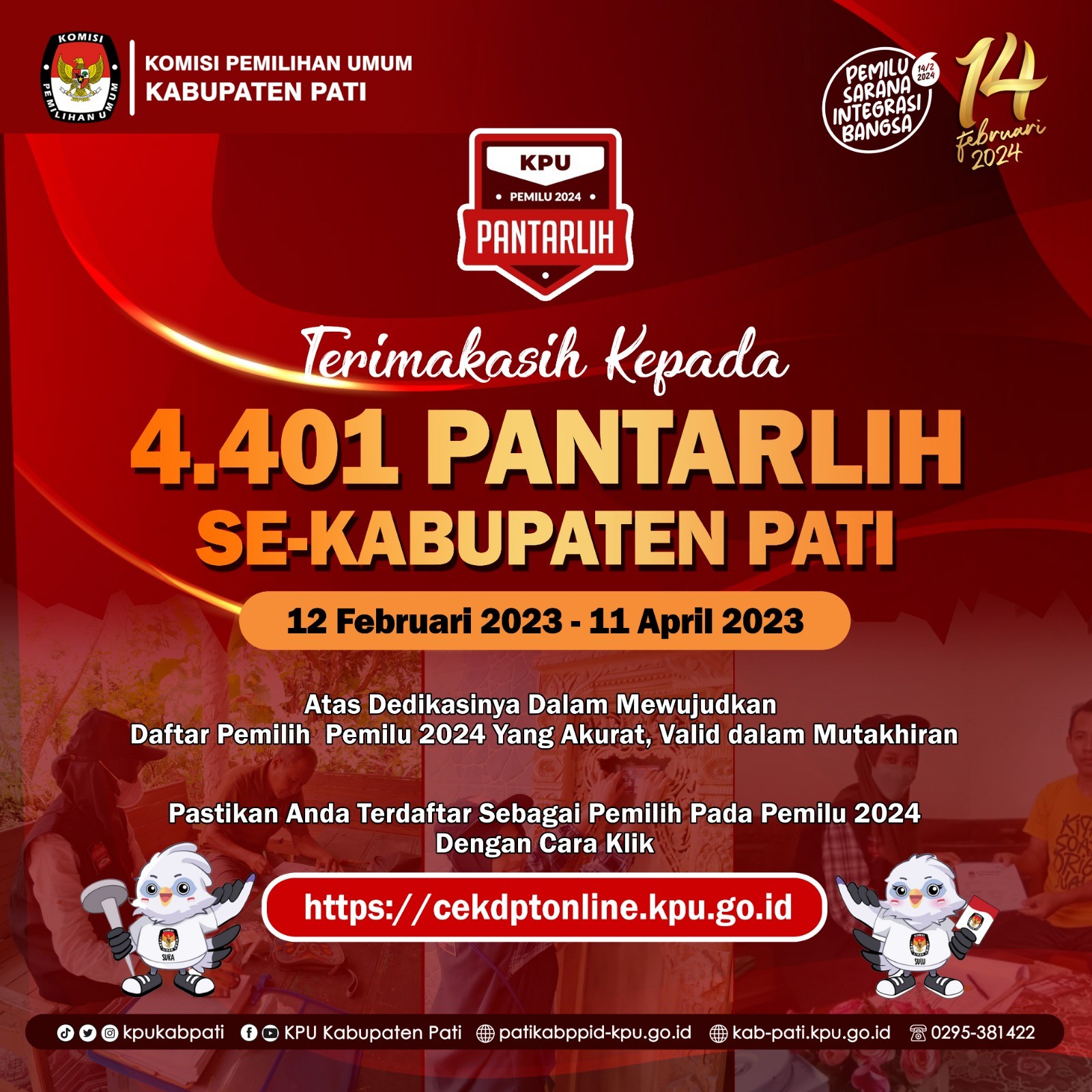 KPU Kabupaten Pati mengucapkan terima kasih kepada Pantarlih karena telah melaksanakan coklit data pemilih pemilu 2024.