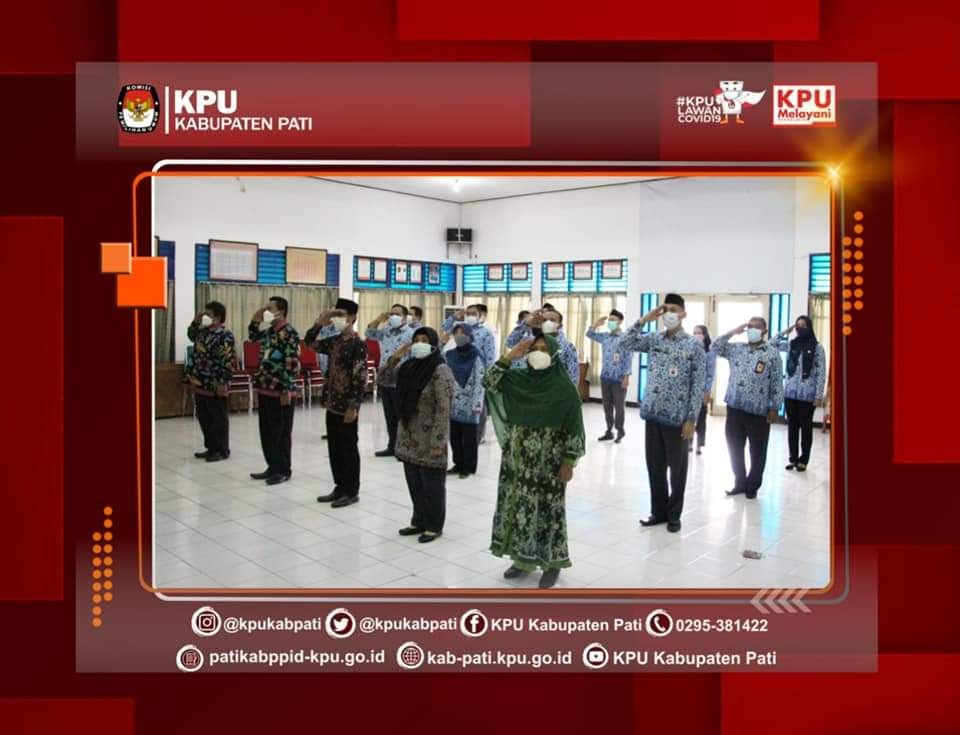 KPU Kabupaten Pati mengikuti Upacara Peringatan Hari Pahlawan Tahun 2021 secara virtual pukul 08:00 s.d 09:00 WIB melalui Chanel Youtube Kemensos RI dengan tetap menerapkan protokol kesehatan. (10/11)