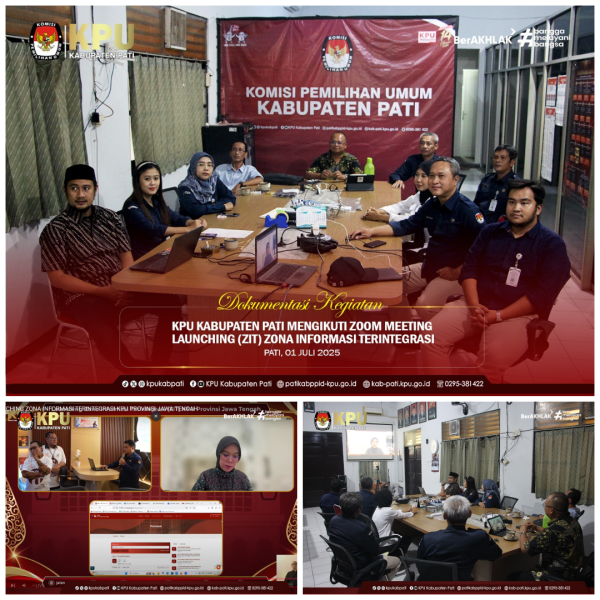 Komisi Pemilihan Umum (KPU) Kabupaten Pati mengikuti Launching Zona Informasi Terintegrasi yang diselenggarakan oleh KPU Provinsi Jawa Tengah secara daring, Selasa (01/07/2025).