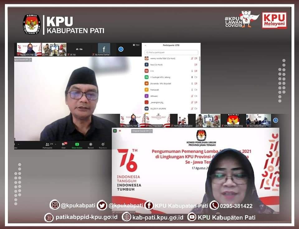 KPU Kabupaten Pati mengikuti zoom meeting Pengumuman Pemenang dan Pemberian Penghargaan dalam rangka Peringatan Hari Ulang Tahun Republik Indonesia Ke-76 yang diselenggarakan oleh KPU Provinsi Jawa Tengah, Selasa, 17 Agustus 2021.