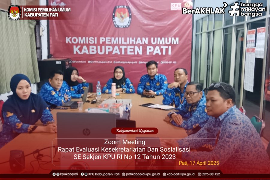 KPU Provinsi Jawa Tengah mengadakan Zoom Meeting Rapat Evaluasi Kesekretariatan Dan Sosialisasi SE Sekjen KPU RI No 12 Tahun 2023.