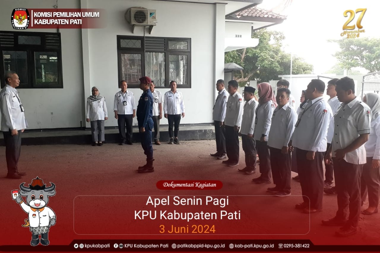 Pada hari Senin 20 Mei 2024 , KPU Kabupaten Pati melaksanakan Upacara Hari Kebangkitan Nasional Ke-116 Tahun 2024. Upacara yang dilaksanakan di lingkungan Sekretariat KPU Kabupaten Pati diikuti oleh segenap Pegawai. dengan pembina upacara Anggota KPU Kabupaten Pati Khusnul Imanuddi,S.IP. berlaku sebagai Komandan Upacara Teguh Wijaya, S.E.