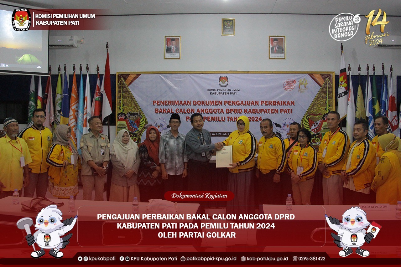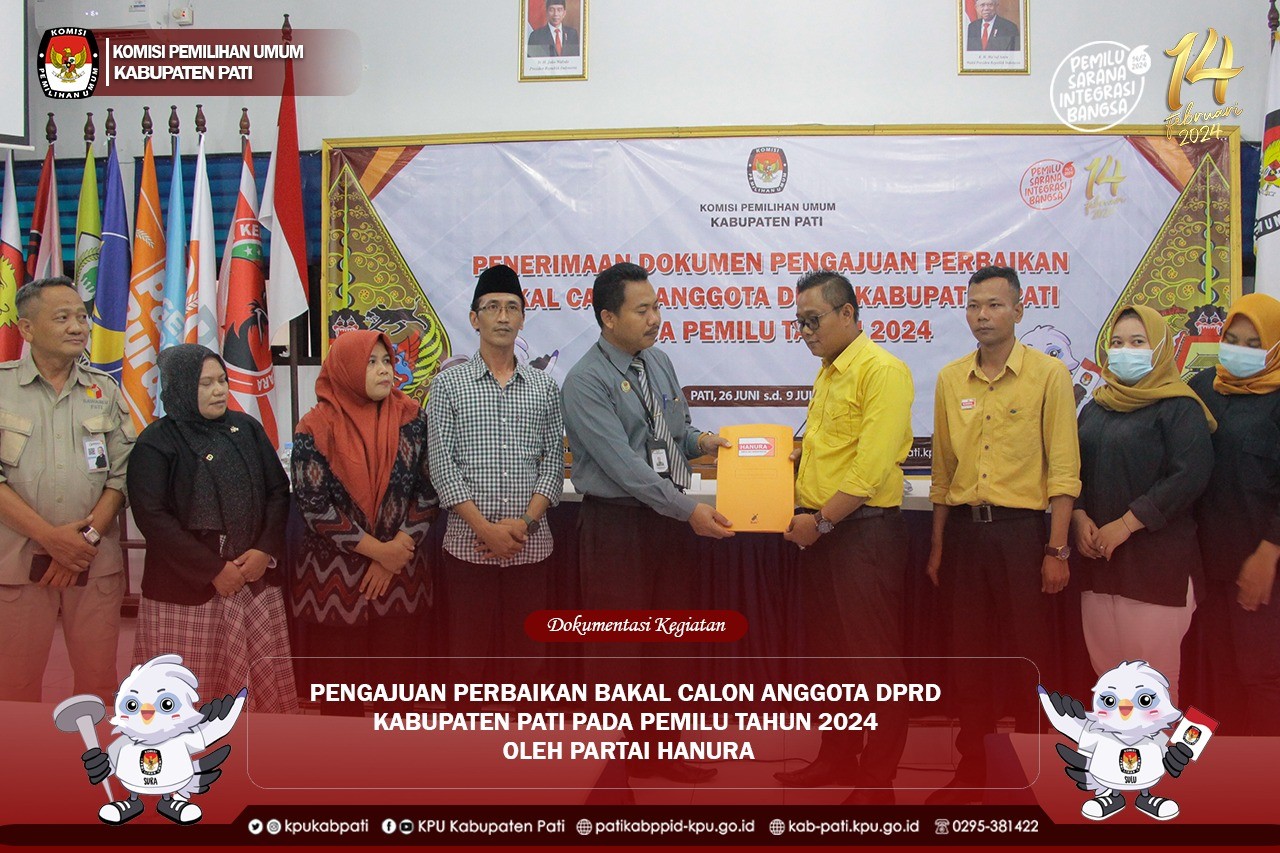KPU Kabupaten Pati menerima pengajuan perbaikan dokumen bakal calon Anggota DPRD Kabupaten Pati Pemilu 2024 dari Partai PDI Perjuangan