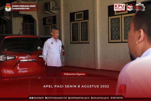 #TemanPemilih, KPU Kabupaten Pati mengawali kegiatan hari Senin (8/8) dengan apel pagi pukul 08:00 WIB. Apel dipimpin oleh Sekretaris KPU Kabupaten Pati, Bapak Sugeng Santosa, S.Sos. selaku Bapak Ulim Maftuh Fiansyah, A.md. selaku komandan apel.