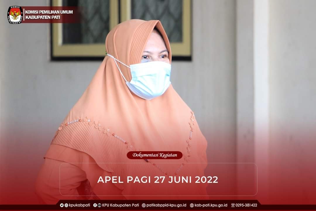 Apel diikuti oleh Komisioner KPU, Pejabat Struktural dan seluruh pegawai di lingkungan KPU Kabupaten Pati. Apel dilaksanakan dengan tetep mematuhi protokol kesehatan.