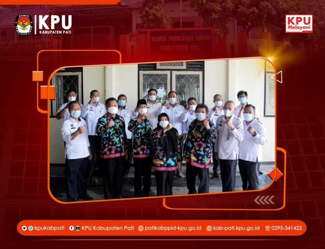 Rabu (5/1) Komisioner KPU Kabupaten Pati dan Sekretaris mengahiri pelantikan pejabat administrasi dan pejabat fungsional pada Sekretariat Jenderal KPU, Sekretariat KPU Provinsi/KIP Aceh dan Sekretariat KPU Kabupaten/kota. Secara daring melalui zoom Meeting.