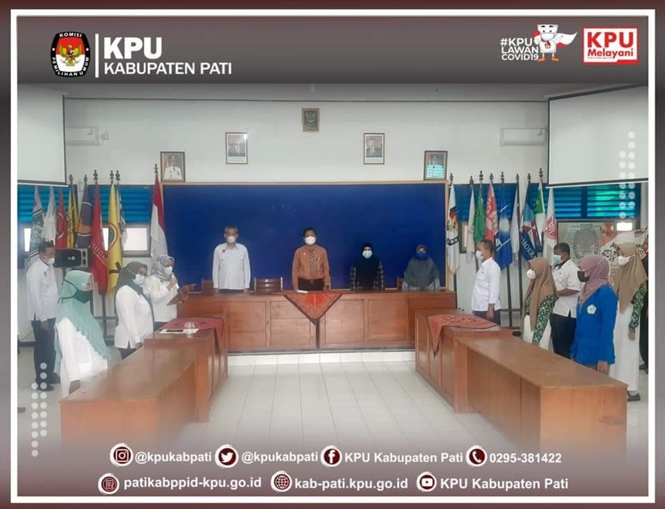 Jum'at (3/9), KPU Kabupaten Pati mengikuti Rapat Kerja Komisi A DPRD Kab. Pati pukul 09.00 WIB s.d selesai bertempat di Ruang Rapat Komisi A DPRD Kab. Pati. Rapat dihadiri oleh Ketua dan Anggota Komisi A DPRD Kab. Pati, Asisten Pemerintahan dan Kesra Setda Kab. Pati Siti Subiati, BPKAD Kab. Pati Zabidi, Bag. Hukum Setda Kab. Pati Budi, Kepala Kesbangpol Kab. Pati Sugiyono, Ketua KPU Kab. Pati Imbang Setiawan, ST., Anggota KPU Kab. Pati Divis Teknis Penyelenggaraan Supriyanto, SH., MH., Anggota KPU Kab. Pati Divisi Sosialisasi, Pendidikan Pemilih, Partisipasi Masyarakat dan SDM Haryono, SHI., MSI., Anggota KPU Kab. Pati Divisi Perencanaan, Data dan Informasi Khoirun Nikmah, S.Sos., Anggota KPU Kab. Pati Divisi Hukum dan Pengawasan Sunarsih, S.Ag., MH. Hadir pula Sekretaris KPU Kab. Pati Sugeng Santosa, S.Sos., Kasubbag Program dan Data KPU Kab. Pati Deddy Pirngadi, ST., Kasubbag Hukum KPU Kab. Pati Qurniawan Adi Utomo, SH., dan Kasubbag Teknis dan Hupmas KPU Kab. Pati Joko Purwanto, SE.