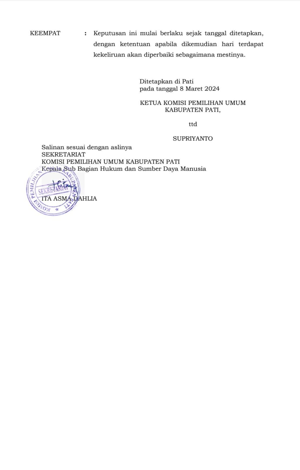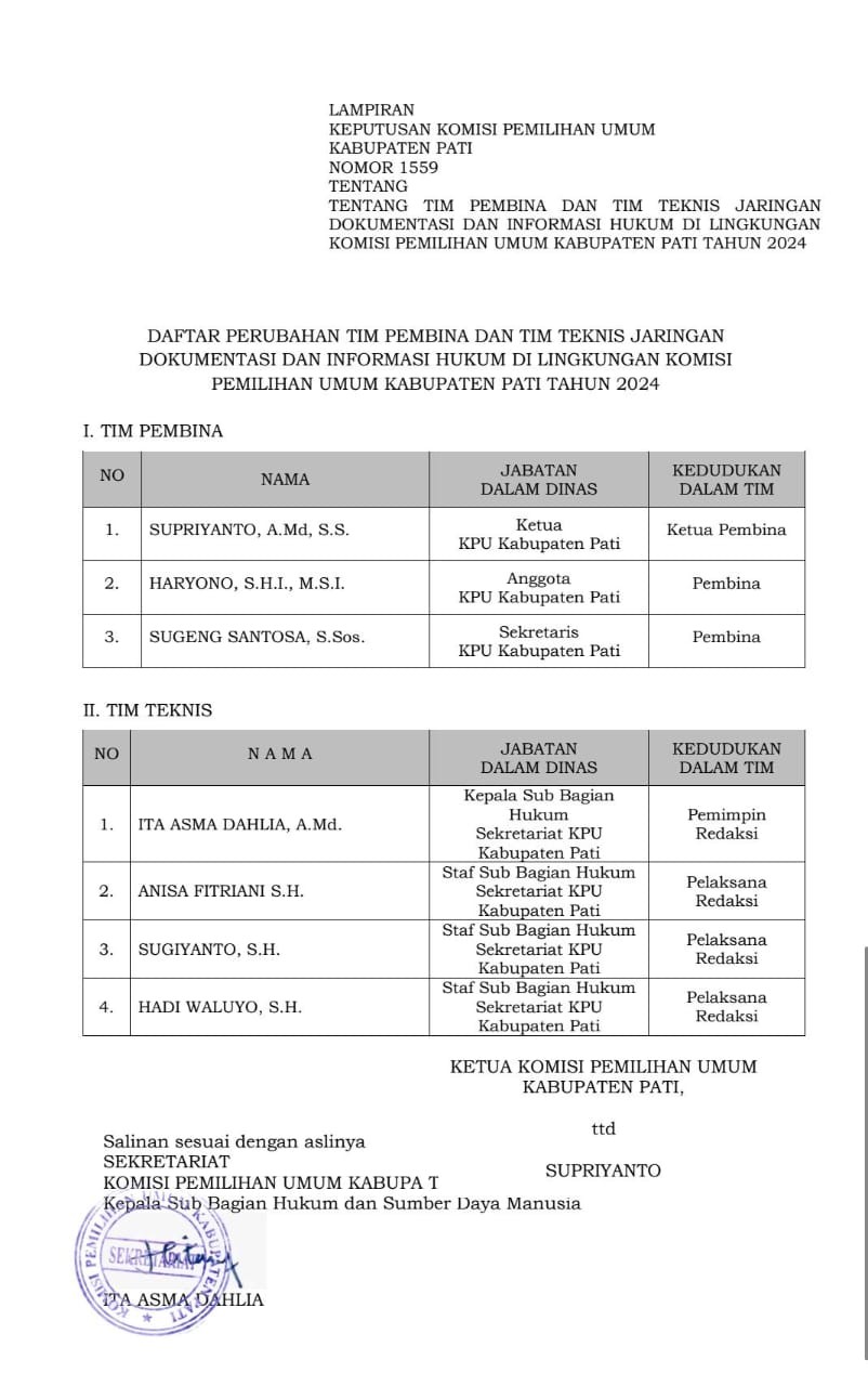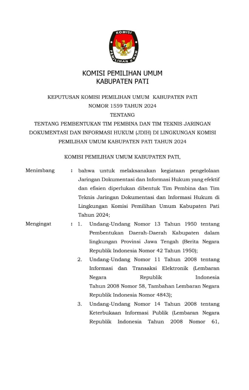 SK dan Daftar Informasi Publik KPU Kabupaten Pati